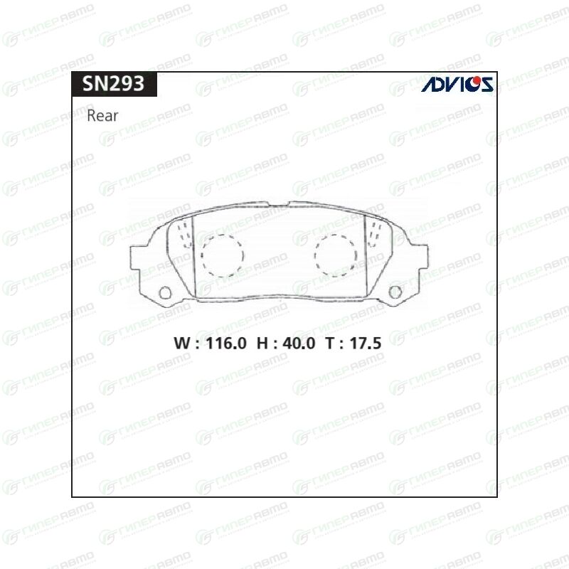 Вы можете купить колодки тормозные дисковые advics задние, комплект на ось (4 шт), арт. sn293 в интернет-магазине колодок Гиперавто. Цена на ADVICS SN293, описание, характеристики и фотографии.