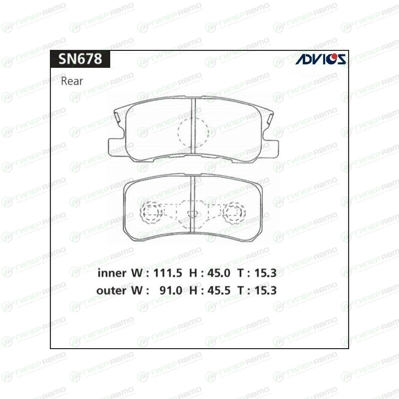 Вы можете купить колодки тормозные дисковые advics задние, комплект на ось (4 шт), арт. sn678 в интернет-магазине колодок Гиперавто. Цена на ADVICS SN678, описание, характеристики и фотографии.