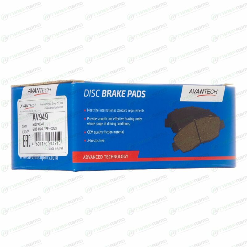 Вы можете купить колодки тормозные дисковые avantech, передние, комплект на ось (4 шт), арт. av949 в интернет-магазине колодок Гиперавто. Цена на Avantech AV949, описание, характеристики и фотографии.