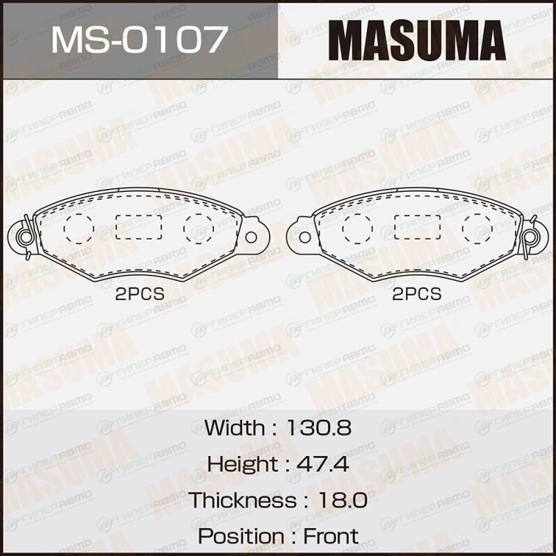 MASUMA MS-0107. Купить колодки тормозные дисковые masuma передние, комплект на ось (4 шт), арт. ms-0107 по выгодной цене в интернет-магазине запчастей Гиперавто. (50393)