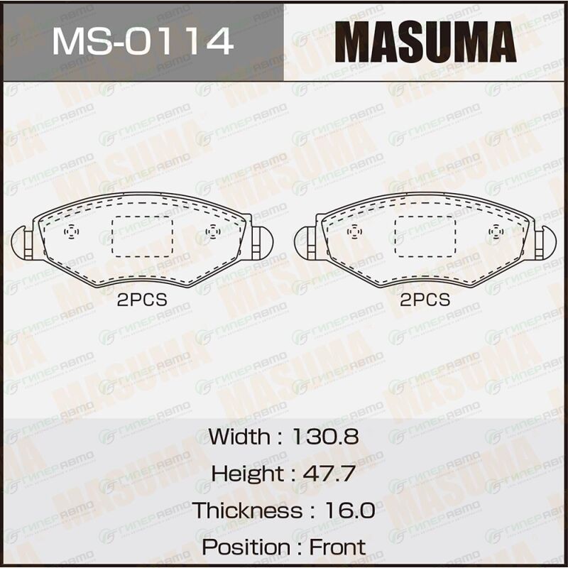 MASUMA MS-0114. Купить колодки тормозные дисковые masuma передние, комплект на ось (4 шт), арт. ms-0114 по выгодной цене в интернет-магазине запчастей Гиперавто. (47752)