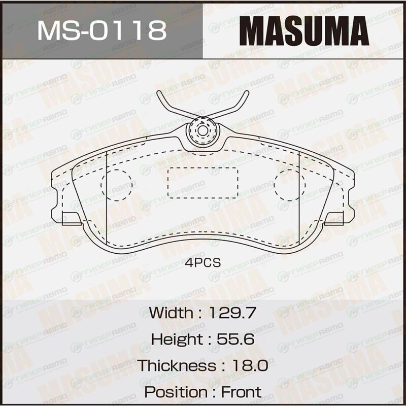 MASUMA MS-0118. Купить колодки тормозные дисковые masuma передние, комплект на ось (4 шт), арт. ms-0118 по выгодной цене в интернет-магазине запчастей Гиперавто. (47588)