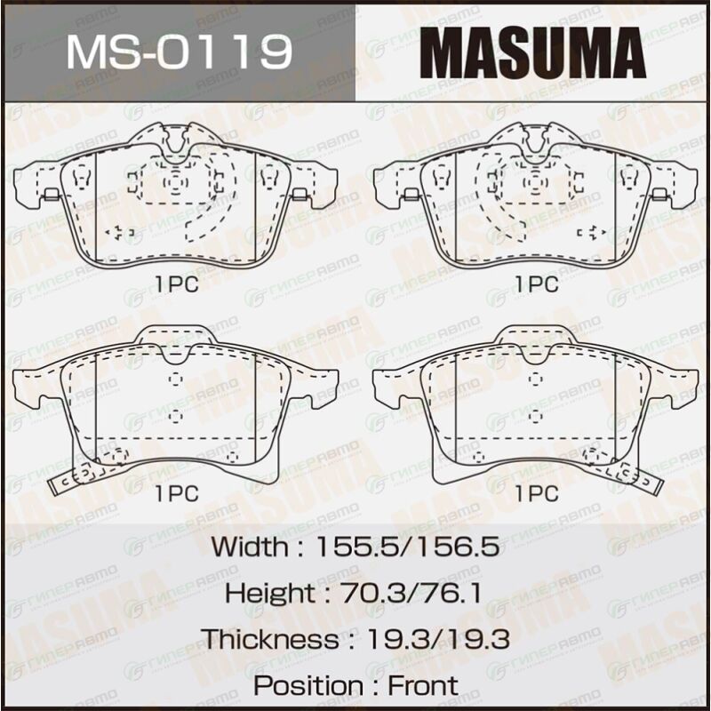 MASUMA MS-0119. Купить колодки тормозные дисковые masuma передние, комплект на ось (4 шт), арт. ms-0119 по выгодной цене в интернет-магазине запчастей Гиперавто. (50481)