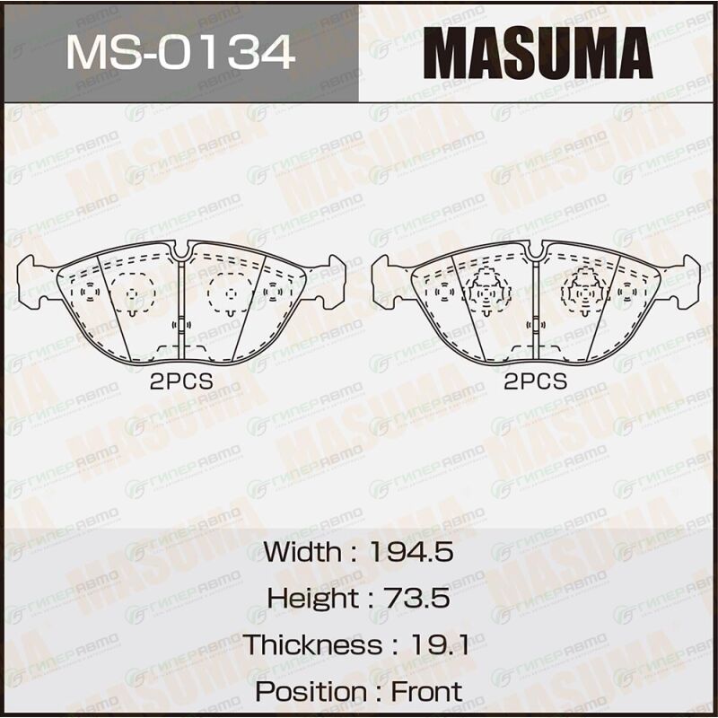 MASUMA MS-0134. Купить колодки тормозные дисковые masuma, передние, комплект на ось (4 шт), арт. ms-0134 по выгодной цене в интернет-магазине запчастей Гиперавто. (77303)