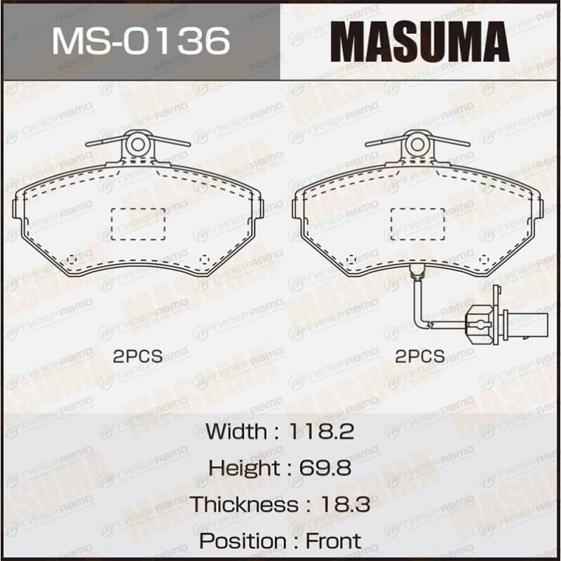 MASUMA MS-0136. Купить колодки тормозные дисковые masuma передние, комплект на ось (4 шт), арт. ms-0136 по выгодной цене в интернет-магазине запчастей Гиперавто. (50868)