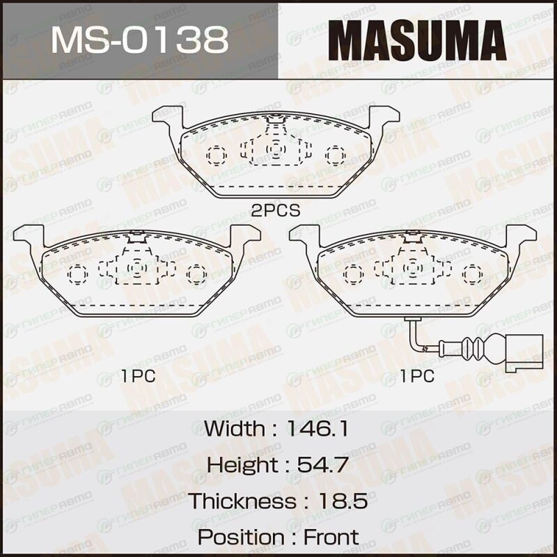 MASUMA MS-0138. Купить колодки тормозные дисковые masuma передние, комплект на ось (4 шт), арт. ms-0138 по выгодной цене в интернет-магазине запчастей Гиперавто. (47759)