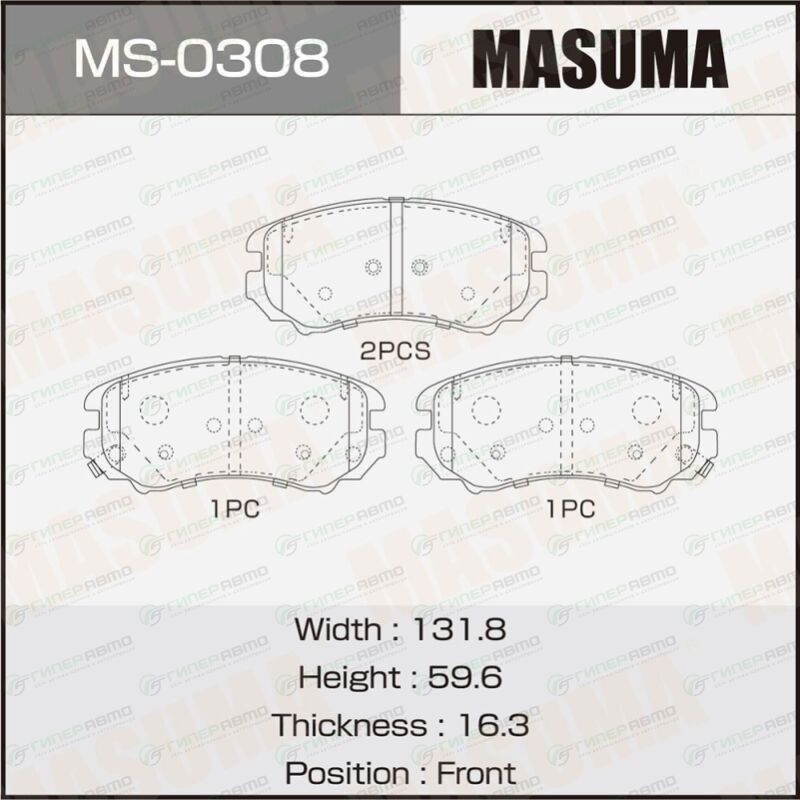 MASUMA MS-0308. Купить колодки тормозные дисковые masuma передние, комплект на ось (4 шт), арт. ms-0308 по выгодной цене в интернет-магазине запчастей Гиперавто. (49003)