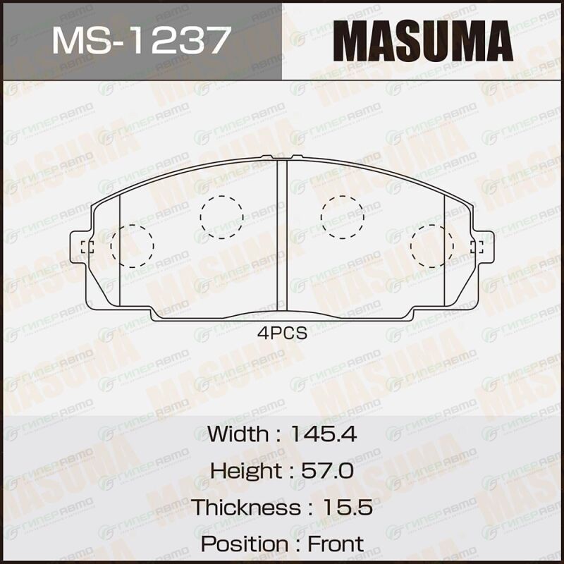 MASUMA MS-1237. Купить колодки тормозные дисковые masuma передние, комплект на ось (4 шт), арт. ms-1237 по выгодной цене в интернет-магазине запчастей Гиперавто. (11363)