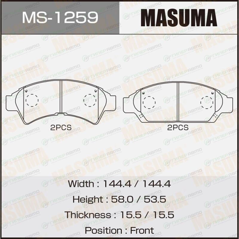 MASUMA MS-1259. Купить колодки тормозные дисковые masuma передние, комплект на ось (4 шт), арт. ms-1259 по выгодной цене в интернет-магазине запчастей Гиперавто. (11372)