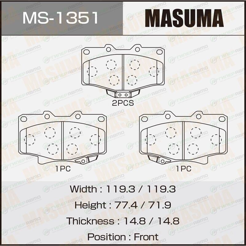 MASUMA MS-1351. Купить колодки тормозные дисковые masuma передние, комплект на ось (4 шт), арт. ms-1351 по выгодной цене в интернет-магазине запчастей Гиперавто. (99099)