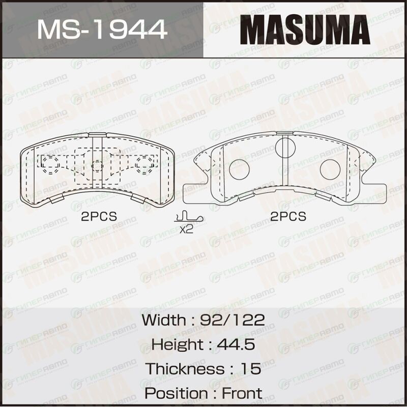 MASUMA MS-1944. Купить колодки тормозные дисковые masuma, передние, комплект на ось (4 шт), арт. ms-1944 по выгодной цене в интернет-магазине запчастей Гиперавто. (76702)