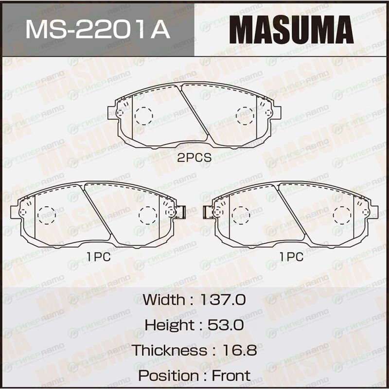 MASUMA MS-2201. Купить колодки тормозные дисковые masuma передние, комплект на ось (4 шт), арт. ms-2201 по выгодной цене в интернет-магазине запчастей Гиперавто. (89098)