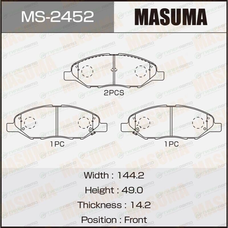 MASUMA MS-2452. Купить колодки тормозные дисковые masuma передние, комплект на ось (4 шт), арт. ms-2452 по выгодной цене в интернет-магазине запчастей Гиперавто. (16146)