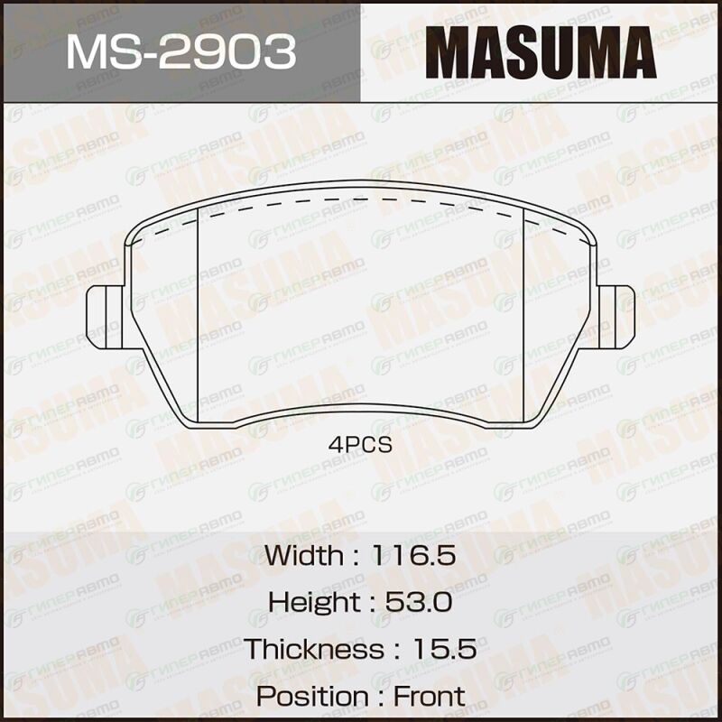 MASUMA MS-2903. Купить колодки тормозные дисковые masuma передние, комплект на ось (4 шт), арт. ms-2903 по выгодной цене в интернет-магазине запчастей Гиперавто. (50685)