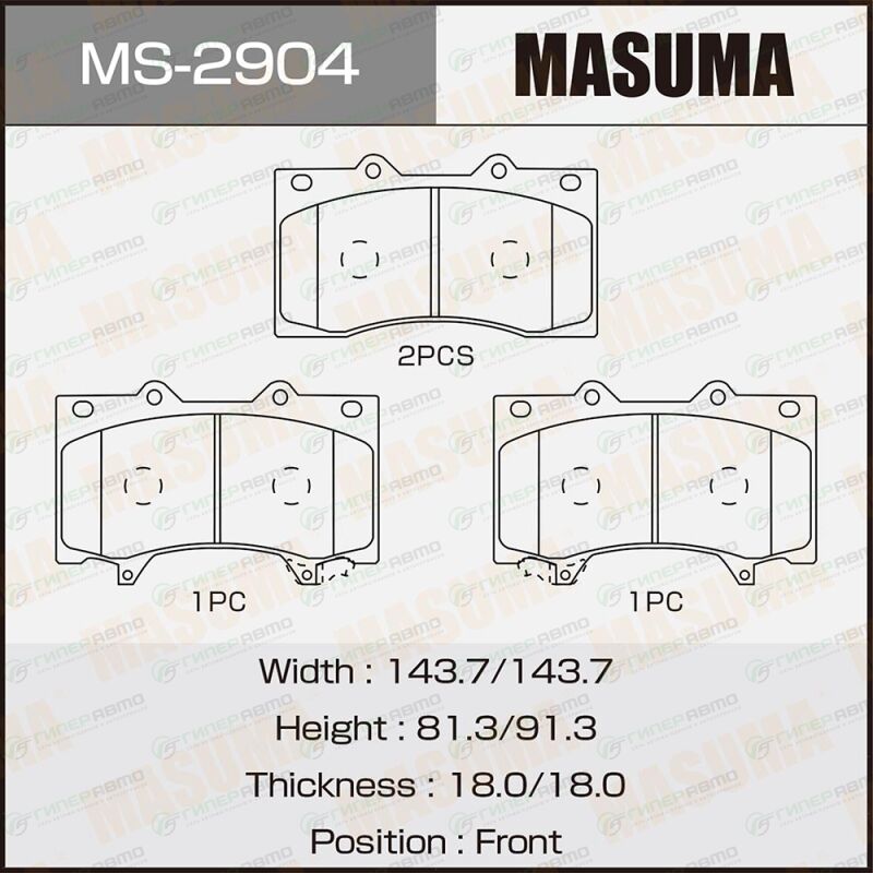 MASUMA MS-2904. Купить колодки тормозные дисковые masuma передние, комплект на ось (4 шт), арт. ms-2904 по выгодной цене в интернет-магазине запчастей Гиперавто. (50486)
