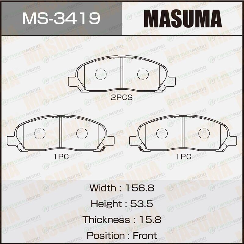 MASUMA MS-3419. Купить колодки тормозные дисковые masuma передние, комплект на ось (4 шт), арт. ms-3419 по выгодной цене в интернет-магазине запчастей Гиперавто. (13867)