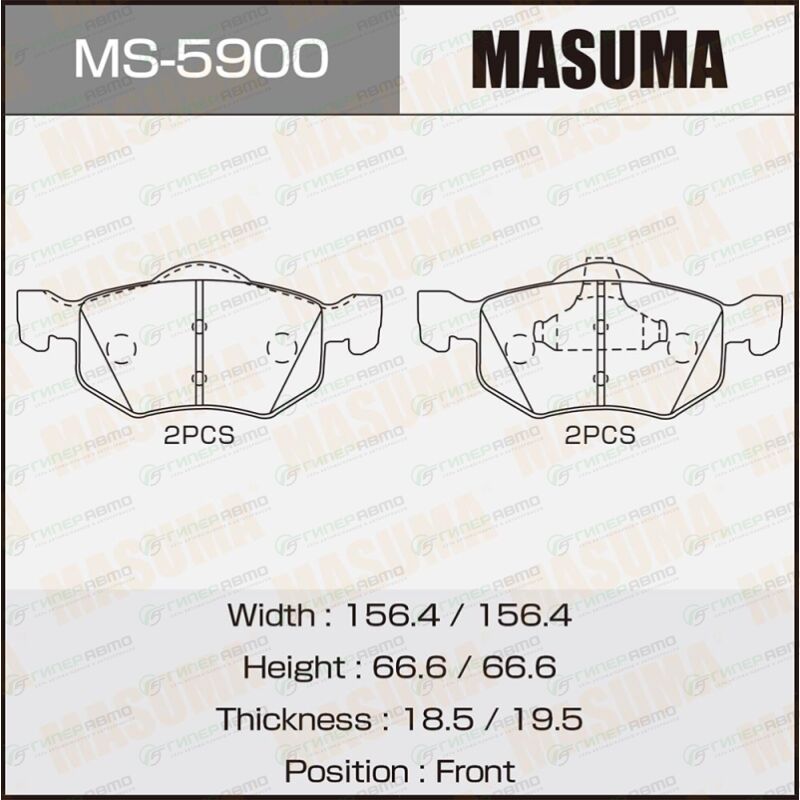 MASUMA MS-5900. Купить колодки тормозные дисковые masuma передние, комплект на ось (4 шт), арт. ms-5900 по выгодной цене в интернет-магазине запчастей Гиперавто. (28747)