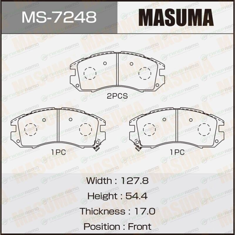 MASUMA MS-7248. Купить колодки тормозные дисковые masuma передние, комплект на ось (4 шт), арт. ms-7248 по выгодной цене в интернет-магазине запчастей Гиперавто. (11235)
