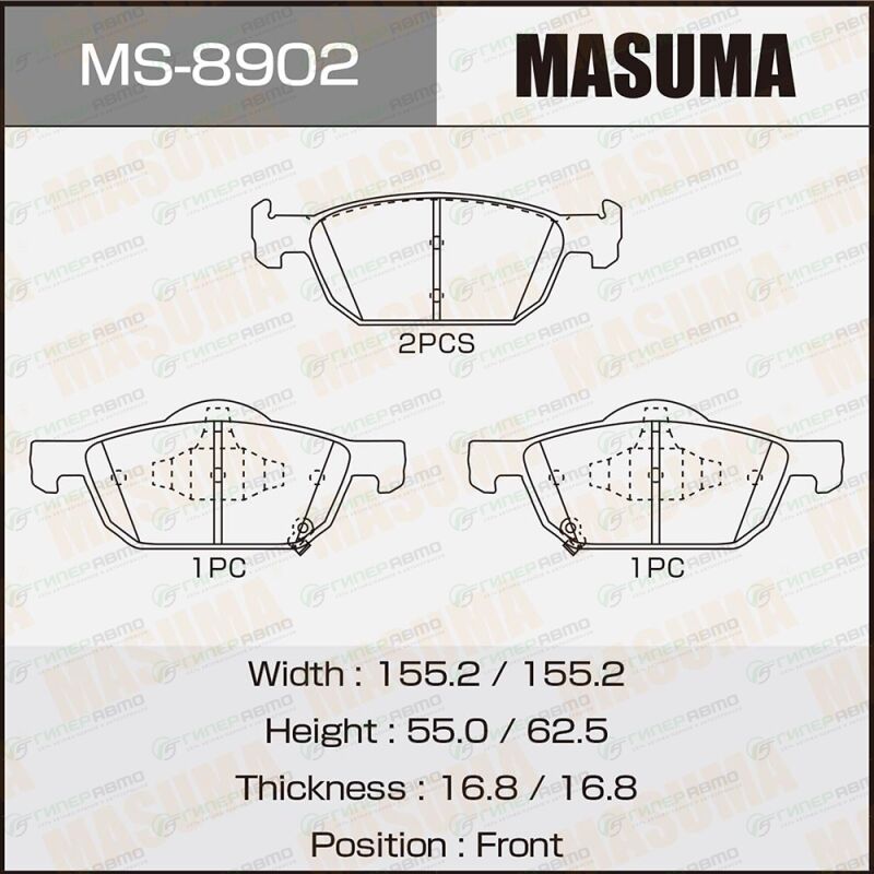 MASUMA MS-8902. Купить колодки тормозные дисковые masuma передние, комплект на ось (4 шт), арт. ms-8902 по выгодной цене в интернет-магазине запчастей Гиперавто. (39294)