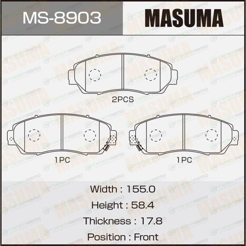 MASUMA MS-8903. Купить колодки тормозные дисковые masuma передние, комплект на ось (4 шт), арт. ms-8903 по выгодной цене в интернет-магазине запчастей Гиперавто. (40568)