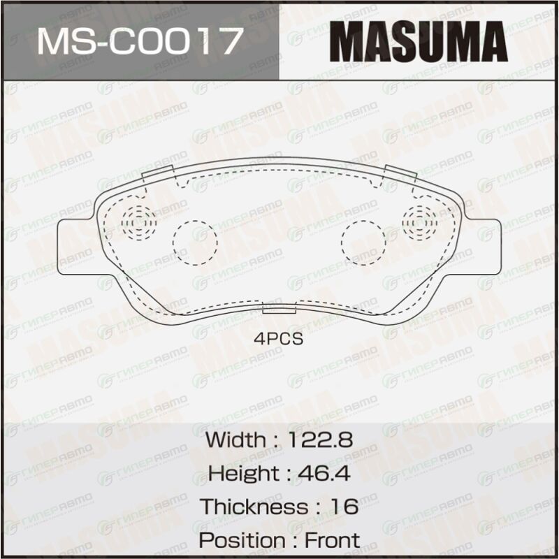 MASUMA MS-C0017. Купить колодки тормозные дисковые masuma, передние, комплект на ось (4 шт), арт. ms-c0017 по выгодной цене в интернет-магазине запчастей Гиперавто. (76934)