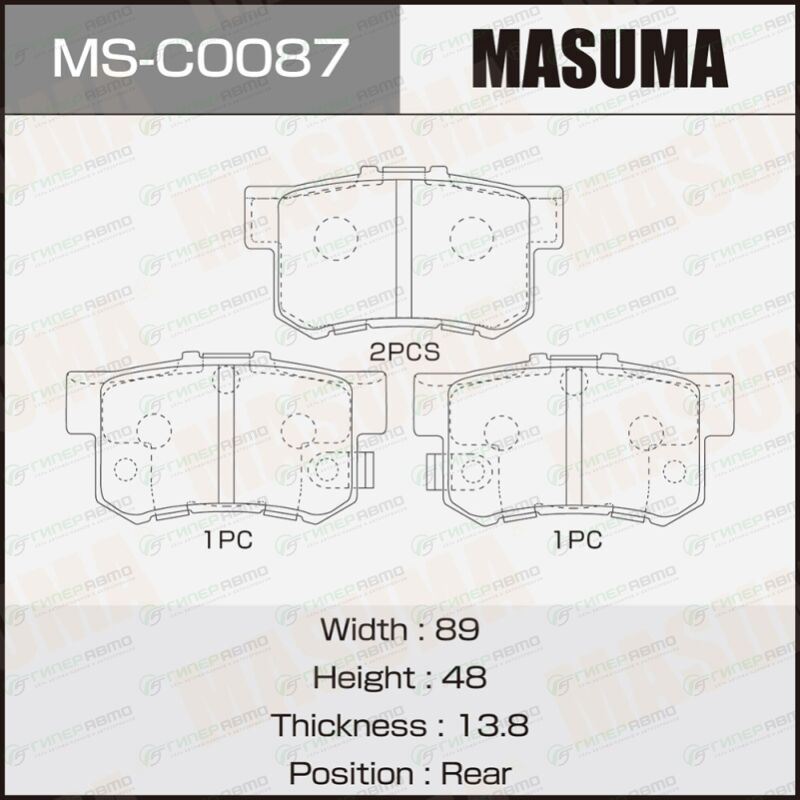 Вы можете купить колодки тормозные дисковые masuma, передние, комплект на ось (4 шт), арт. ms-c0087 в интернет-магазине колодок Гиперавто. Цена на MASUMA MS-C0087, описание, характеристики и фотографии.