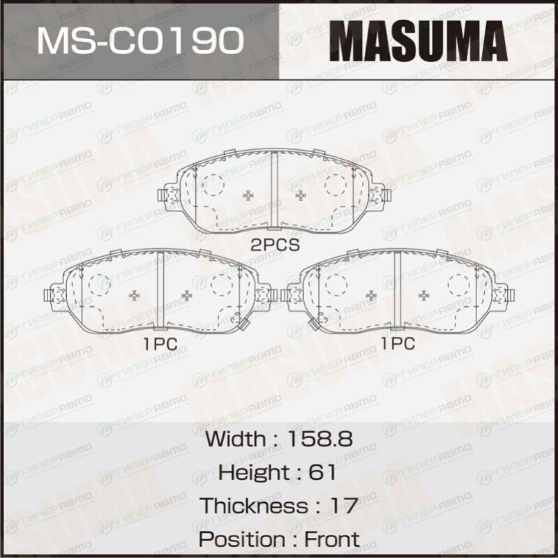 Вы можете купить колодки тормозные дисковые masuma, передние, комплект на ось (4 шт), арт. ms-c0190 в интернет-магазине колодок Гиперавто. Цена на MASUMA MS-C0190, описание, характеристики и фотографии.