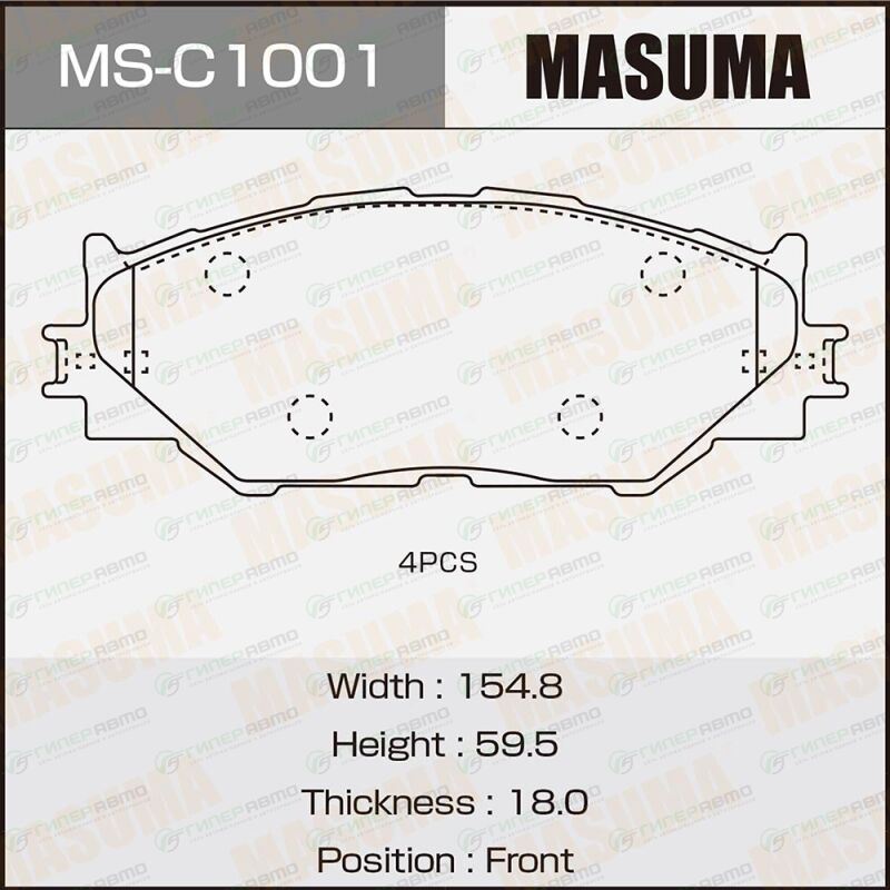 MASUMA MS-C1001. Купить колодки тормозные дисковые masuma, передние, комплект на ось (4 шт), арт. ms-c1001 по выгодной цене в интернет-магазине запчастей Гиперавто. (76916)