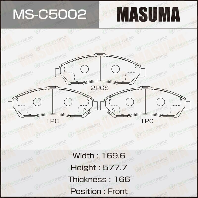 MASUMA MS-C5002. Купить колодки тормозные дисковые masuma, передние, комплект на ось (4 шт), арт. ms-c5002 по выгодной цене в интернет-магазине запчастей Гиперавто. (77445)