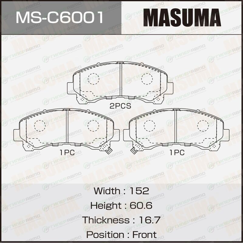 Вы можете купить колодки тормозные дисковые masuma, передние, комплект на ось (4 шт), арт. ms-c6001 в интернет-магазине колодок Гиперавто. Цена на MASUMA MS-C6001, описание, характеристики и фотографии.
