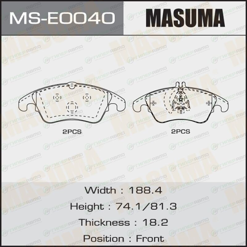 MASUMA MS-E0040. Купить колодки тормозные дисковые masuma передние, комплект на ось (4 шт), арт. ms-e0040 по выгодной цене в интернет-магазине запчастей Гиперавто. (68390)
