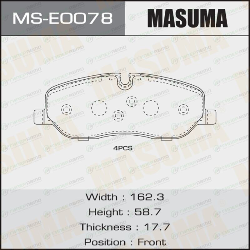 MASUMA MS-E0078. Купить колодки тормозные дисковые masuma передние, комплект на ось (4 шт), арт. ms-e0078 по выгодной цене в интернет-магазине запчастей Гиперавто. (68351)
