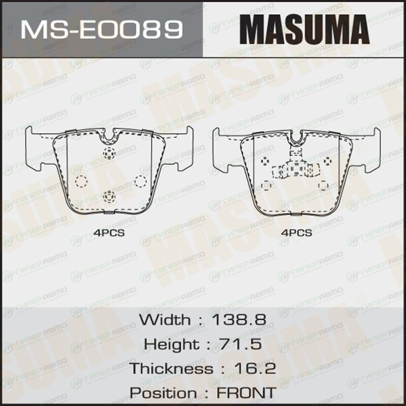 MASUMA MS-E0089. Купить колодки тормозные дисковые masuma передние, комплект на ось (4 шт), арт. ms-e0089 по выгодной цене в интернет-магазине запчастей Гиперавто. (67616)