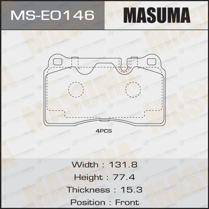 MASUMA MS-E0146. Купить колодки тормозные дисковые masuma передние, комплект на ось (4 шт), арт. ms-e0146 по выгодной цене в интернет-магазине запчастей Гиперавто. (68362)
