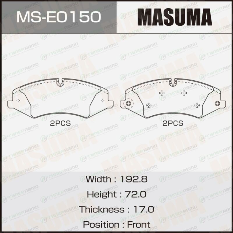 MASUMA MS-E0150. Купить колодки тормозные дисковые masuma передние, комплект на ось (4 шт), арт. ms-e0150 по выгодной цене в интернет-магазине запчастей Гиперавто. (68363)