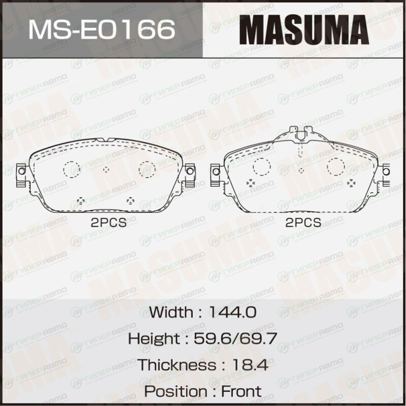 MASUMA MS-E0166. Купить колодки тормозные дисковые masuma передние, комплект на ось (4 шт), арт. ms-e0166 по выгодной цене в интернет-магазине запчастей Гиперавто. (68225)