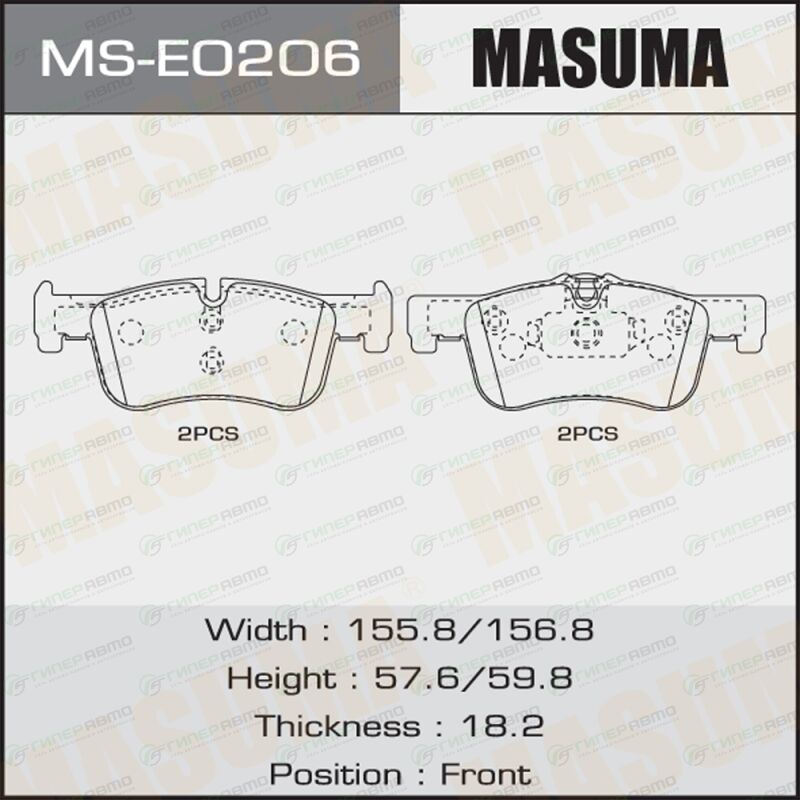 MASUMA MS-E0206. Купить колодки тормозные дисковые masuma передние, комплект на ось (4 шт), арт. ms-e0206 по выгодной цене в интернет-магазине запчастей Гиперавто. (68365)