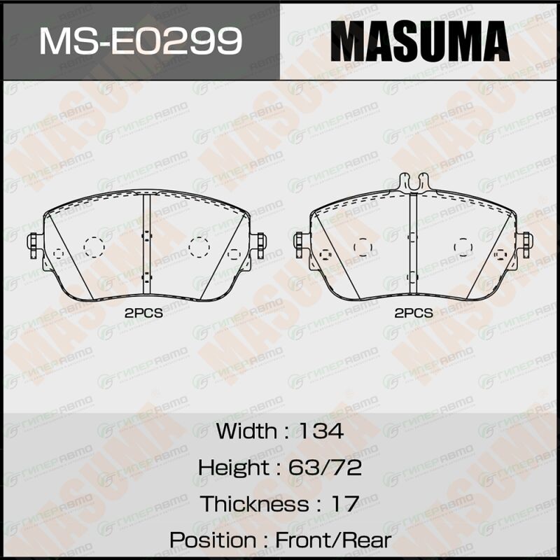 MASUMA MS-E0299. Купить колодки тормозные дисковые masuma, передние, комплект на ось (4 шт), арт. ms-e0299 по выгодной цене в интернет-магазине запчастей Гиперавто. (70331)