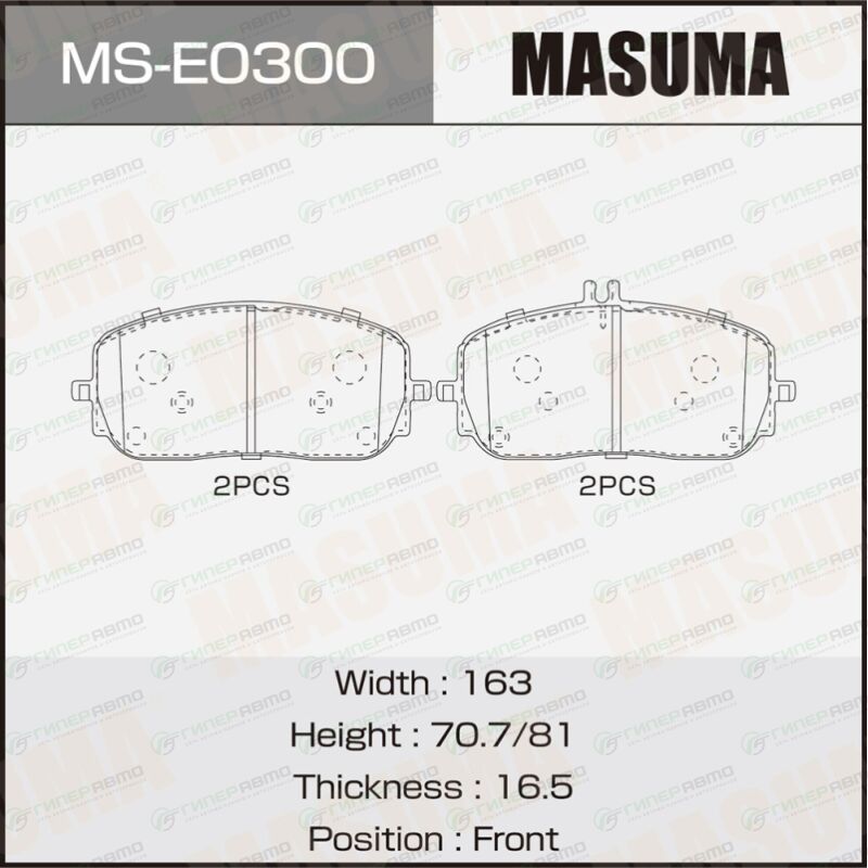 Вы можете купить колодки тормозные дисковые masuma, передние, комплект на ось (4 шт), арт. ms-e0300 в интернет-магазине колодок Гиперавто. Цена на MASUMA MS-E0300, описание, характеристики и фотографии.