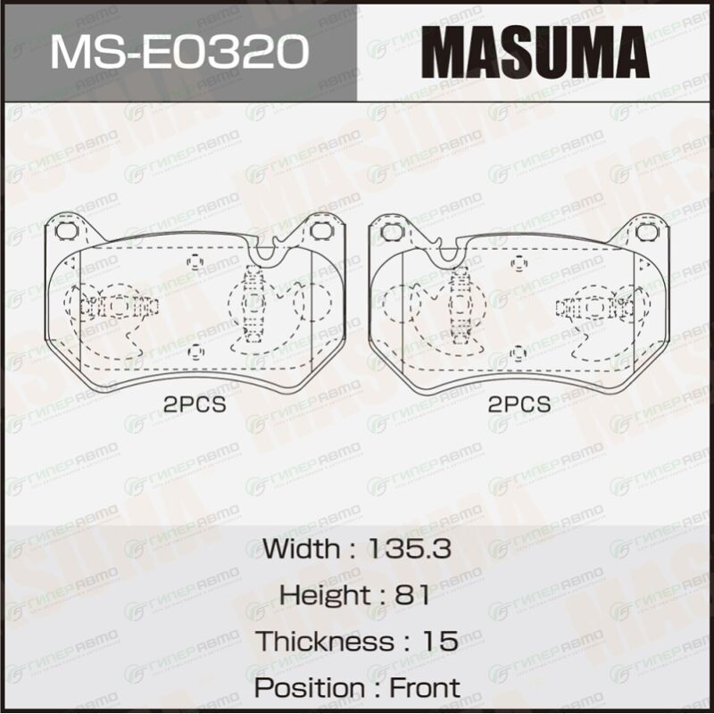 MASUMA MS-E0320. Купить колодки тормозные дисковые masuma, передние, комплект на ось (4 шт), арт. ms-e0320 по выгодной цене в интернет-магазине запчастей Гиперавто. (76016)