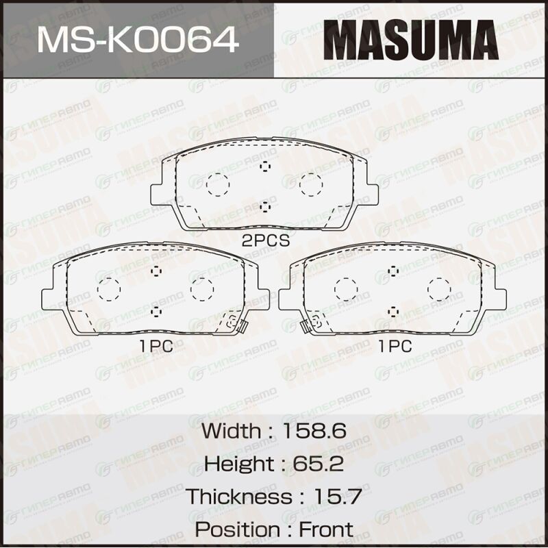 MASUMA MS-K0064. Купить колодки тормозные дисковые masuma, передние, комплект на ось (4 шт), арт. ms-k0064 по выгодной цене в интернет-магазине запчастей Гиперавто. (77306)
