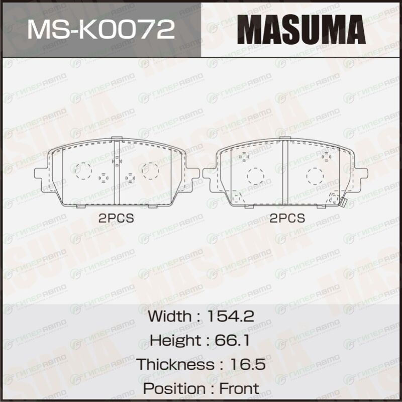 Вы можете купить колодки тормозные дисковые masuma, передние, комплект на ось (4 шт), арт. ms-k0072 в интернет-магазине колодок Гиперавто. Цена на MASUMA MS-K0072, описание, характеристики и фотографии.