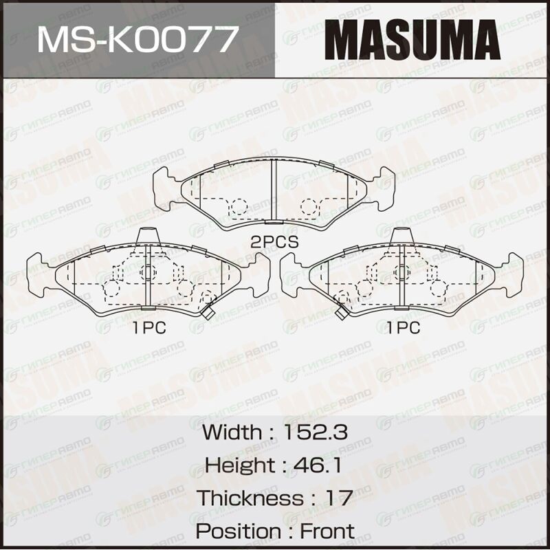 MASUMA MS-K0077. Купить колодки тормозные дисковые masuma, передние, комплект на ось (4 шт), арт. ms-k0077 по выгодной цене в интернет-магазине запчастей Гиперавто. (77953)