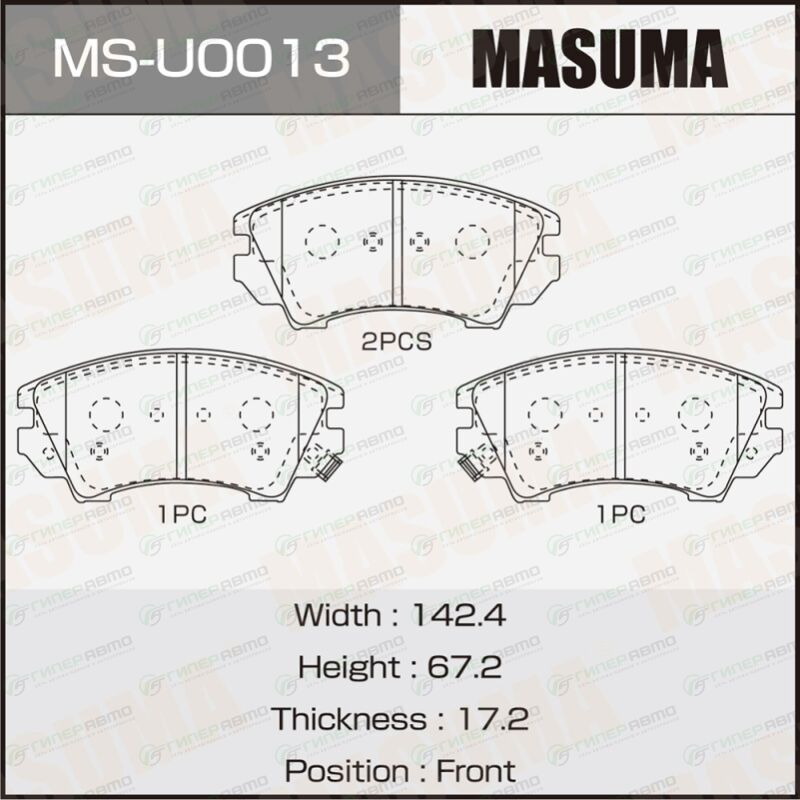 MASUMA MS-U0013. Купить колодки тормозные дисковые masuma, передние, комплект на ось (4 шт), арт. ms-u0013 по выгодной цене в интернет-магазине запчастей Гиперавто. (73589)
