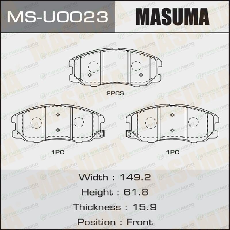 MASUMA MS-U0023. Купить колодки тормозные дисковые masuma передние, комплект на ось (4 шт), арт. ms-u0023 по выгодной цене в интернет-магазине запчастей Гиперавто. (50652)