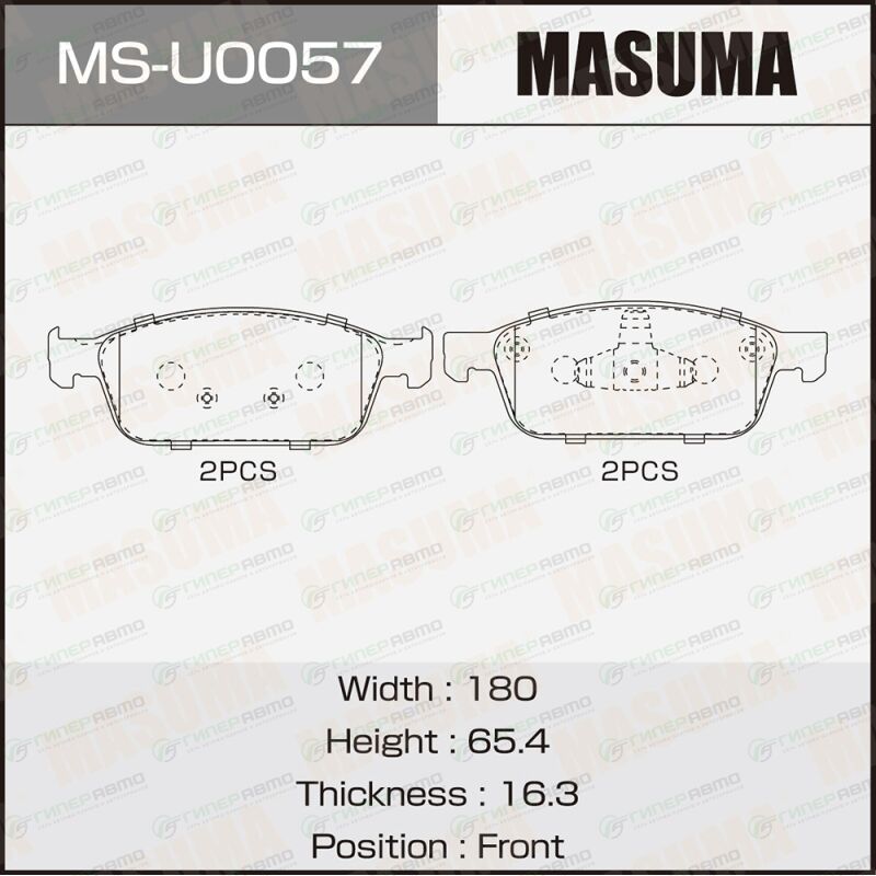 MASUMA MS-U0057. Купить колодки тормозные дисковые masuma, передние, комплект на ось (4 шт), арт. ms-u0057 по выгодной цене в интернет-магазине запчастей Гиперавто. (77202)