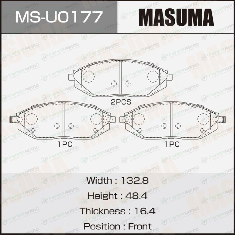 MASUMA MS-U0177. Купить колодки тормозные дисковые masuma, передние, комплект на ось (4 шт), арт. ms-u0177 по выгодной цене в интернет-магазине запчастей Гиперавто. (76453)