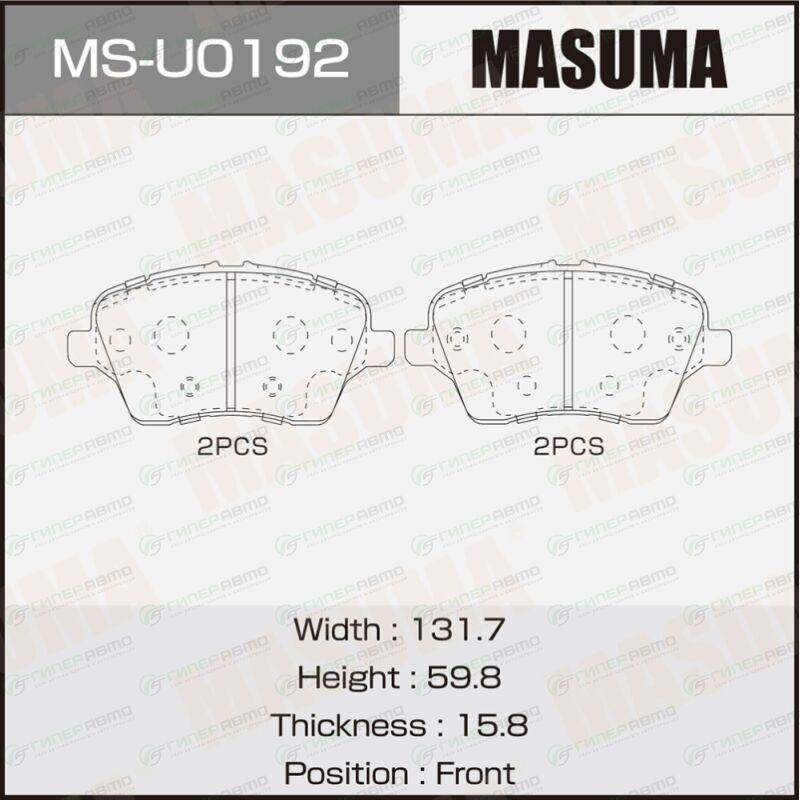 Вы можете купить колодки тормозные дисковые masuma, передние, комплект на ось (4 шт), арт. ms-u0192 в интернет-магазине колодок Гиперавто. Цена на MASUMA MS-U0192, описание, характеристики и фотографии.