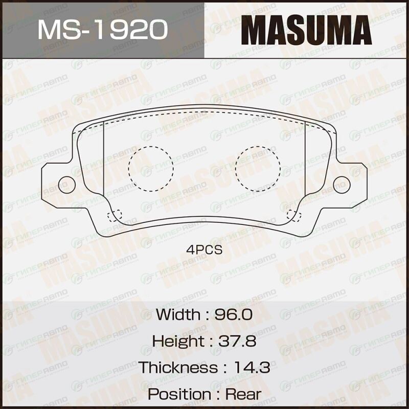MASUMA MS-1920. Купить колодки тормозные дисковые masuma задние, комплект на ось (4 шт), арт. ms-1920 по выгодной цене в интернет-магазине запчастей Гиперавто. (55512)