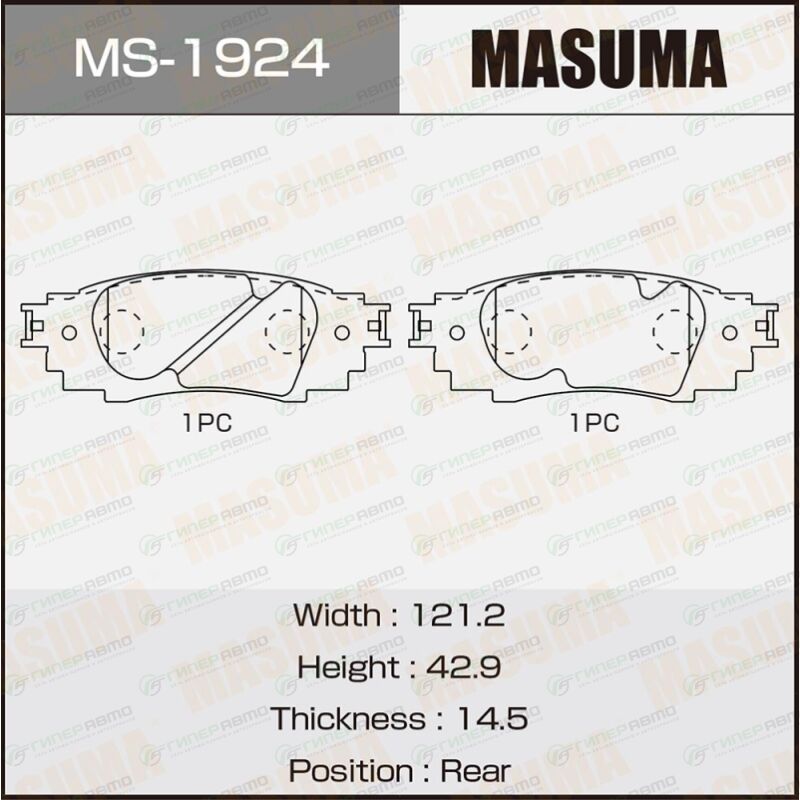 MASUMA MS-1924. Купить колодки тормозные дисковые masuma задние, комплект на ось (4 шт), арт. ms-1924 по выгодной цене в интернет-магазине запчастей Гиперавто. (63432)